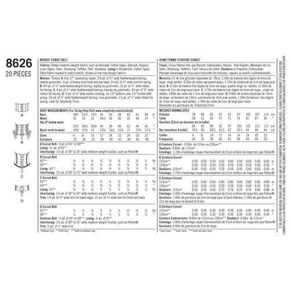 Simplicity Sewing Pattern 8626 Misses Corset Belts Etsy